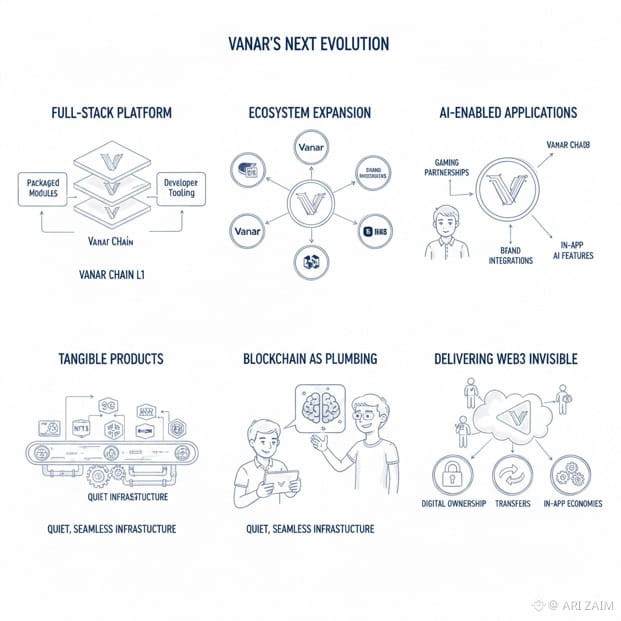 What comes next for Vanar, at least from what the project itself signals through how it structures its platform and messaging, is continued expansion of the “full-stack” feel, meaning more packaged modules, more developer-ready tooling, more ecosystem distribution through gaming and brand partnerships, and a clearer story around AI-enabled applications that run on top of the chain, because the project’s success will be decided less by abstract claims about being an L1 and more by whether it can keep shipping tangible products and integrations that make blockchain invisible while still delivering the ownership and economic features that Web3 promises.