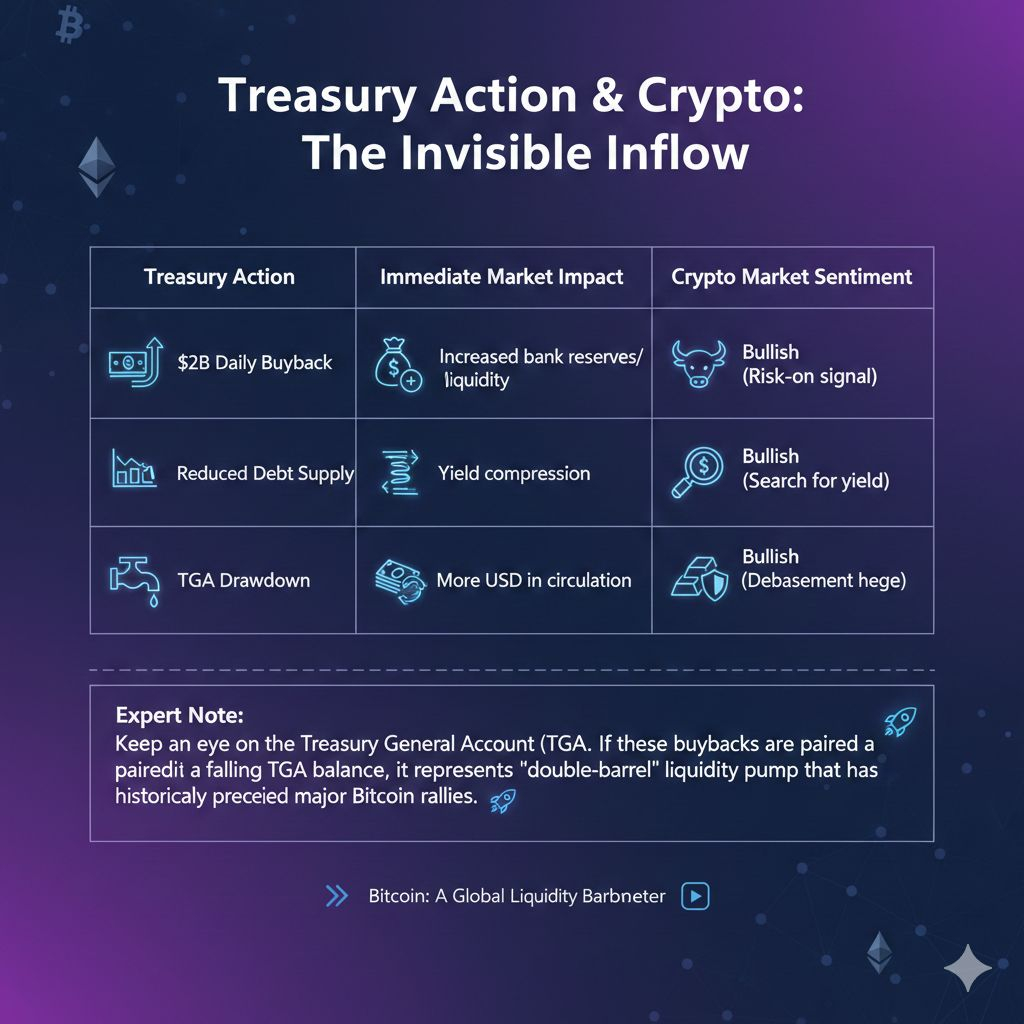 Expert Note: Keep an eye on the Treasury General Account (TGA). If these buybacks are paired with a falling TGA balance, it represents a "double-barrel" liquidity pump that has historically preceded major $BTC rallies.