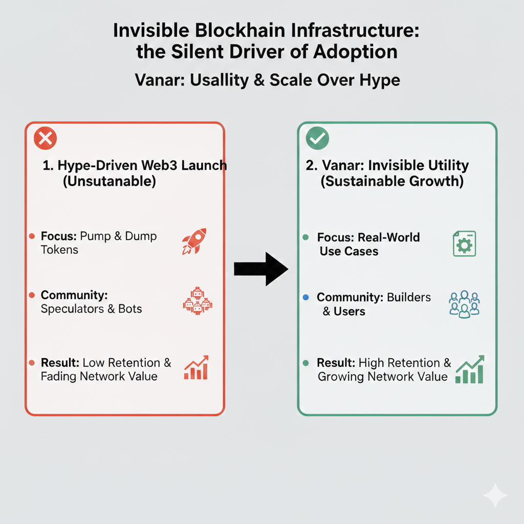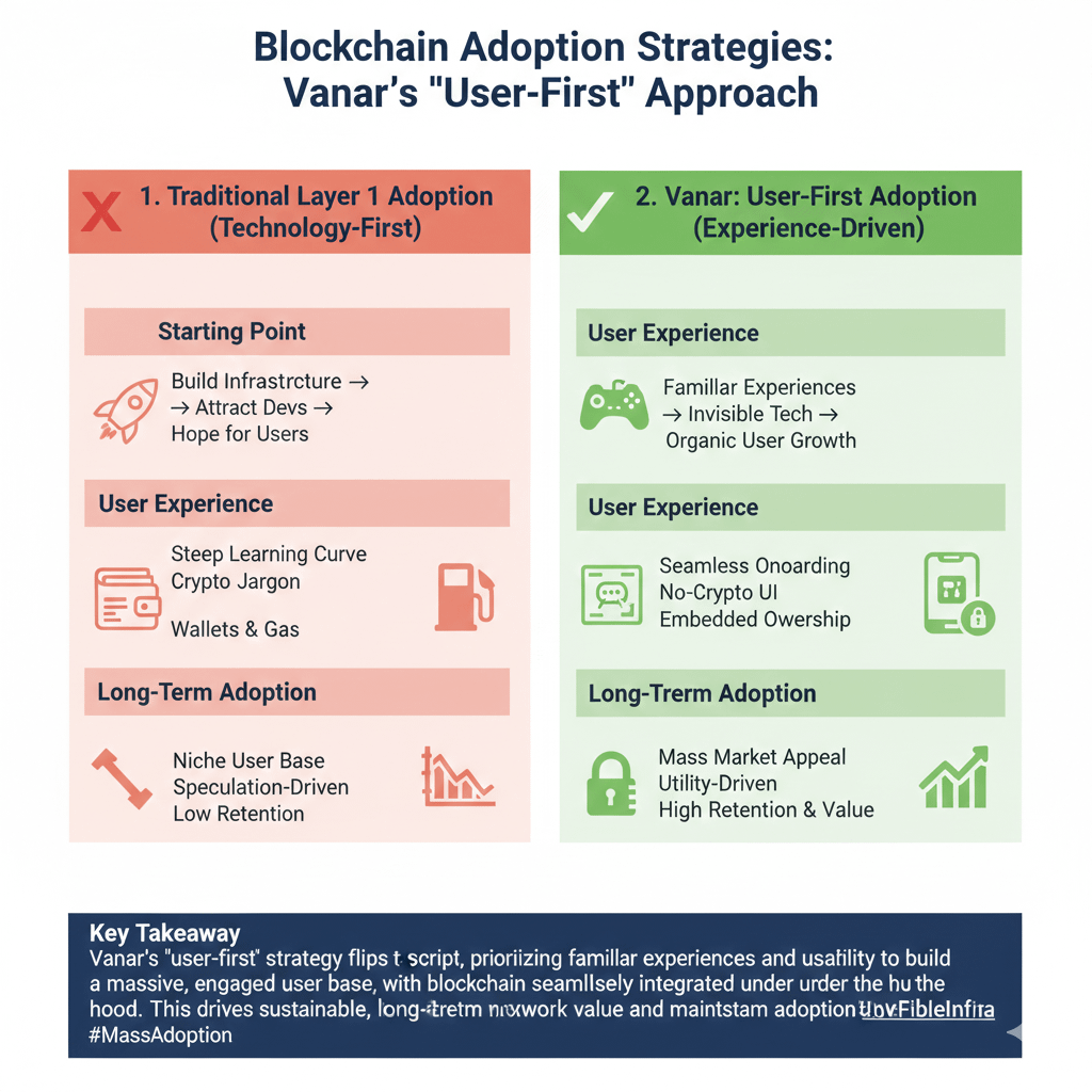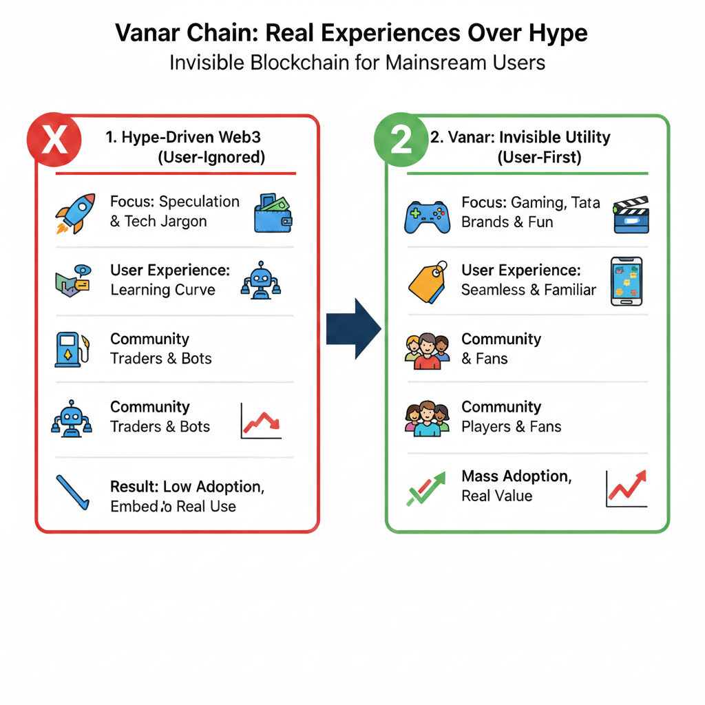 A maioria das blockchains só fala com nativos de cripto. Vanar continuou aparecendo onde usuários normais e criadores eram o foco. No início, isso me deixou cauteloso. Cripto adora a frase próximo bilhão de usuários. Todos repetem isso. Muito poucos projetam para isso. Vanar também não se encaixava em uma categoria clara. Não estava vendendo velocidade. Não estava promovendo narrativas DeFi. Não estava cultivando atenção nas redes sociais. Eu não conseguia explicar facilmente o que era.