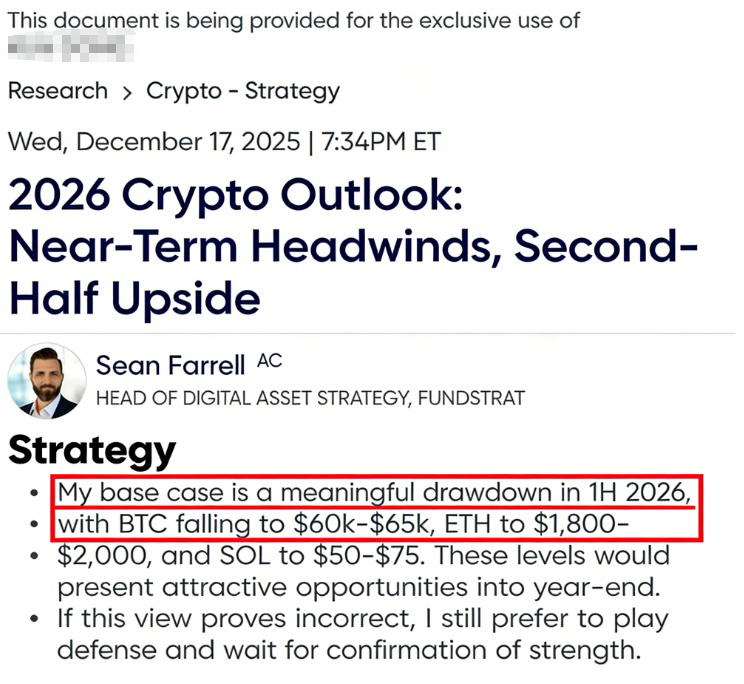 Sean Farrell, chefe da unidade de cripto na empresa de pesquisa de mercado Fundstrat, provou estar certo em suas previsƵes em uma nota para clientes publicada em 17 de dezembro de 2025.