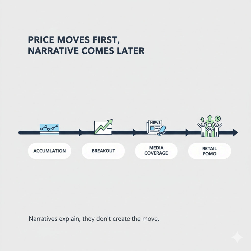 Mas quando uma narrativa está em toda parte, o dinheiro inteligente já está posicionado.