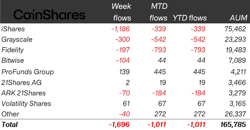 Antes que o preço realmente quebrasse, os fluxos já tinham mudado. Dados da CoinShares mostraram cerca de $1.7B saindo de produtos de investimento em cripto em uma única semana. Isso não é barulho, no entanto. Essa é uma alocação real sendo retirada. Não tudo de uma vez, não dramaticamente, apenas afastando-se silenciosamente. Ao mesmo tempo, os ETFs de Bitcoin à vista dos EUA estavam sangrando em dias consecutivos. Apenas um dia viu centenas de milhões saírem, com os maiores produtos liderando isso. Quando a oferta constante desaparece, o preço não precisa de más notícias para cair.