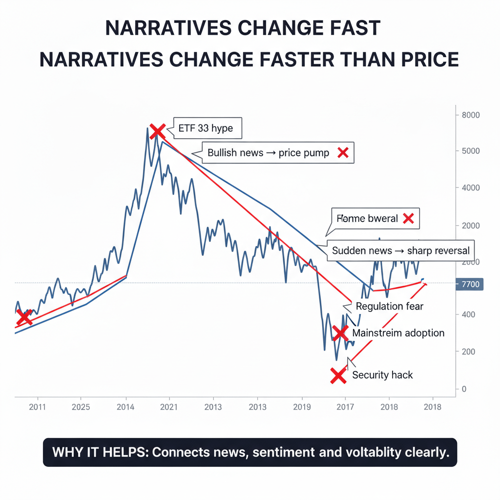 Crypto is driven by narratives, and narratives can flip overnight due to:
