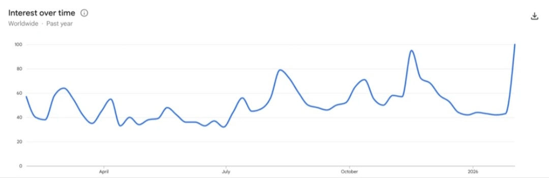 Bitcoin ke Google Trends mein aane wali achanak tezi ne bhavkund mein halchal macha di hai. Haal hi mein worldwide Google Trends data ne dikhaya ki February 2026 ke shuruaat mein “Bitcoin” ka search index 100 tak pahunch gaya – pichhle 12 mahine ka sabse uchch star. Yahi hafta Bitcoin ka bhav ~$81,500 se $60,000 tak dhil gaya, phir mid-$70,000 par lachaar-tod. Is sudden spike ka matlab samajhne ke liye abhi kai pehluon ka jaayza lena hoga – retail aur institutional sentiment, purane patterns, investor mansikta, macro-economic ghatnayein aur kshetriya rujhan. Niche diye gaye vishleshan mein hum in sab binduon par gaur karte hain: