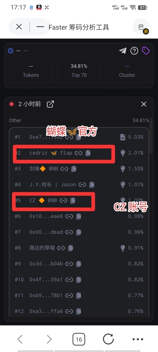 VIRUS CZ持仓1%,蝴蝶🦋官方持仓2%,有图有真相