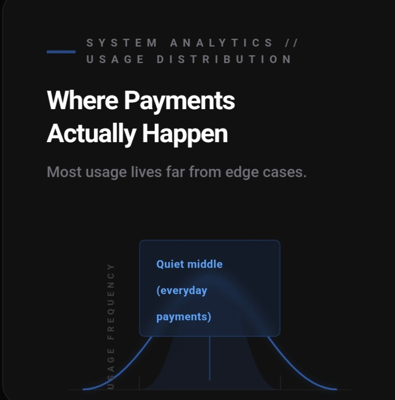 Não parece um sistema construído para brilhar durante momentos de recorde. Parece construído para o meio tranquilo — a vasta maioria do tempo em que nada incomum está acontecendo e ninguém está observando de perto. É aí que o verdadeiro comportamento de pagamento vive.
