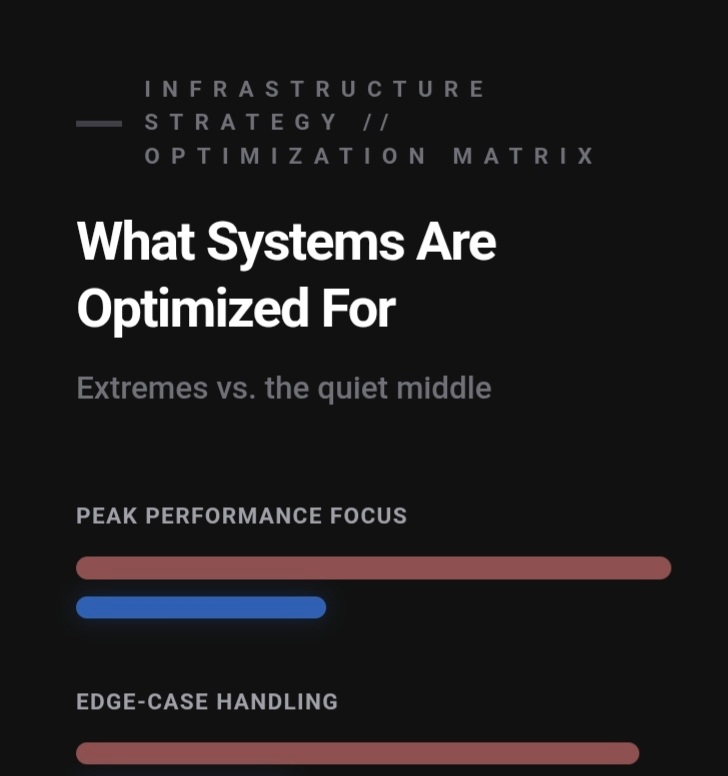 A maioria dos sistemas é projetada obsessivamente em torno de extremos. O momento mais rápido. A carga mais alta. A falha rara. O caso extremo que prova a brilhantismo técnico. Esse instinto faz sentido se você estiver construindo ferramentas para experimentação. Torna-se menos útil quando você está construindo algo que as pessoas devem usar todos os dias.