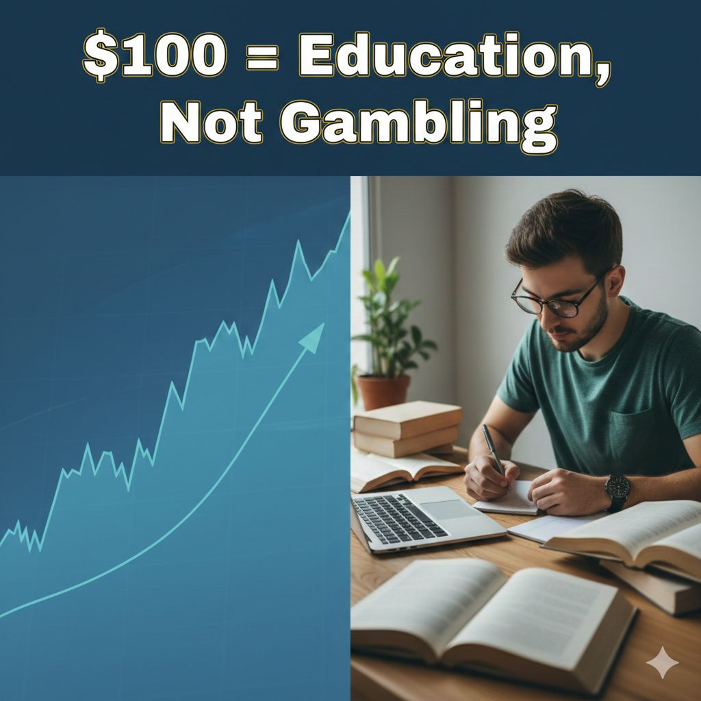 $100 não é pouco, é matrícula. Meu objetivo seria ficar no jogo tempo suficiente para aprender como o preço realmente se move, não para apostar em hype.