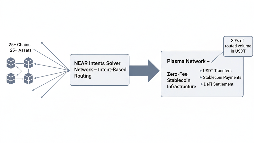 NEAR Intents connects Plasma to 25+ blockchains through intent swaps where you just say what you want and solvers handle routing. Sounds like marketing nonsense until you get what it means for moving serious money onto Plasma from other chains.