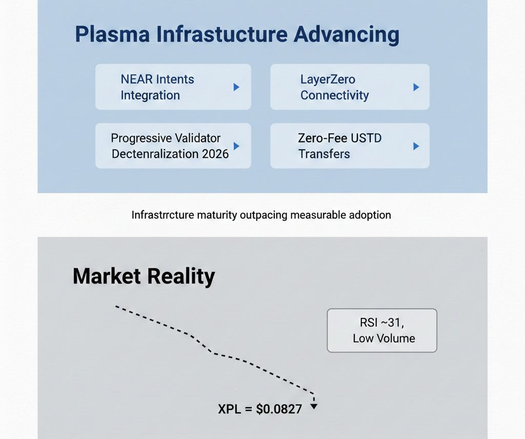 NEAR Intents integration fixes real stablecoin liquidity problems moving between chains onto Plasma. Combined with Plasma zero-fee USDT and coming validator decentralization, infrastructure looks complete. Missing is proof completeness drives Plasma adoption versus just more unused capacity in crowded markets.