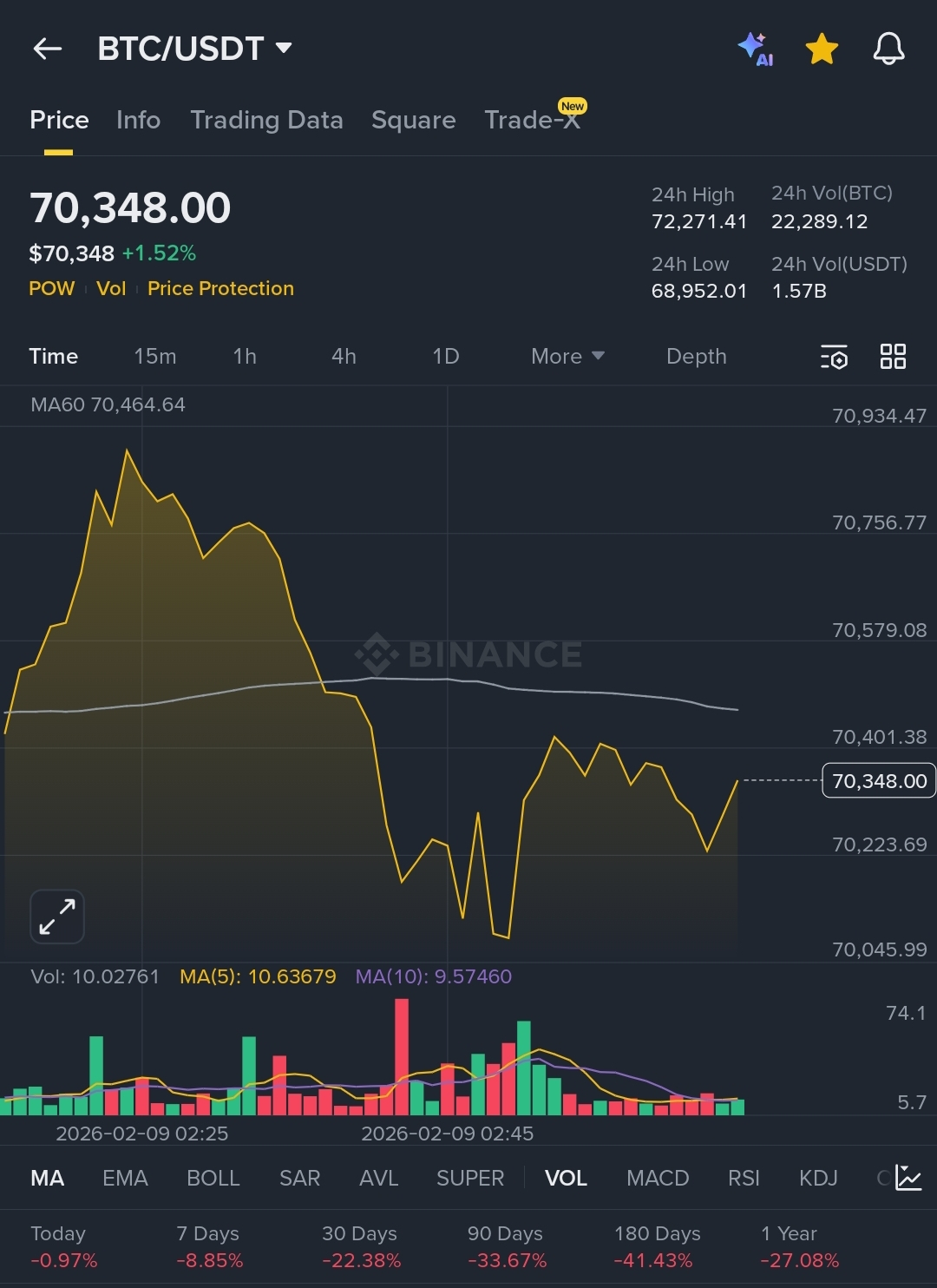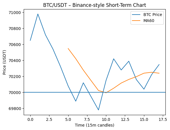 BTC acabou de cair forte e voltou para cerca de $70,348.