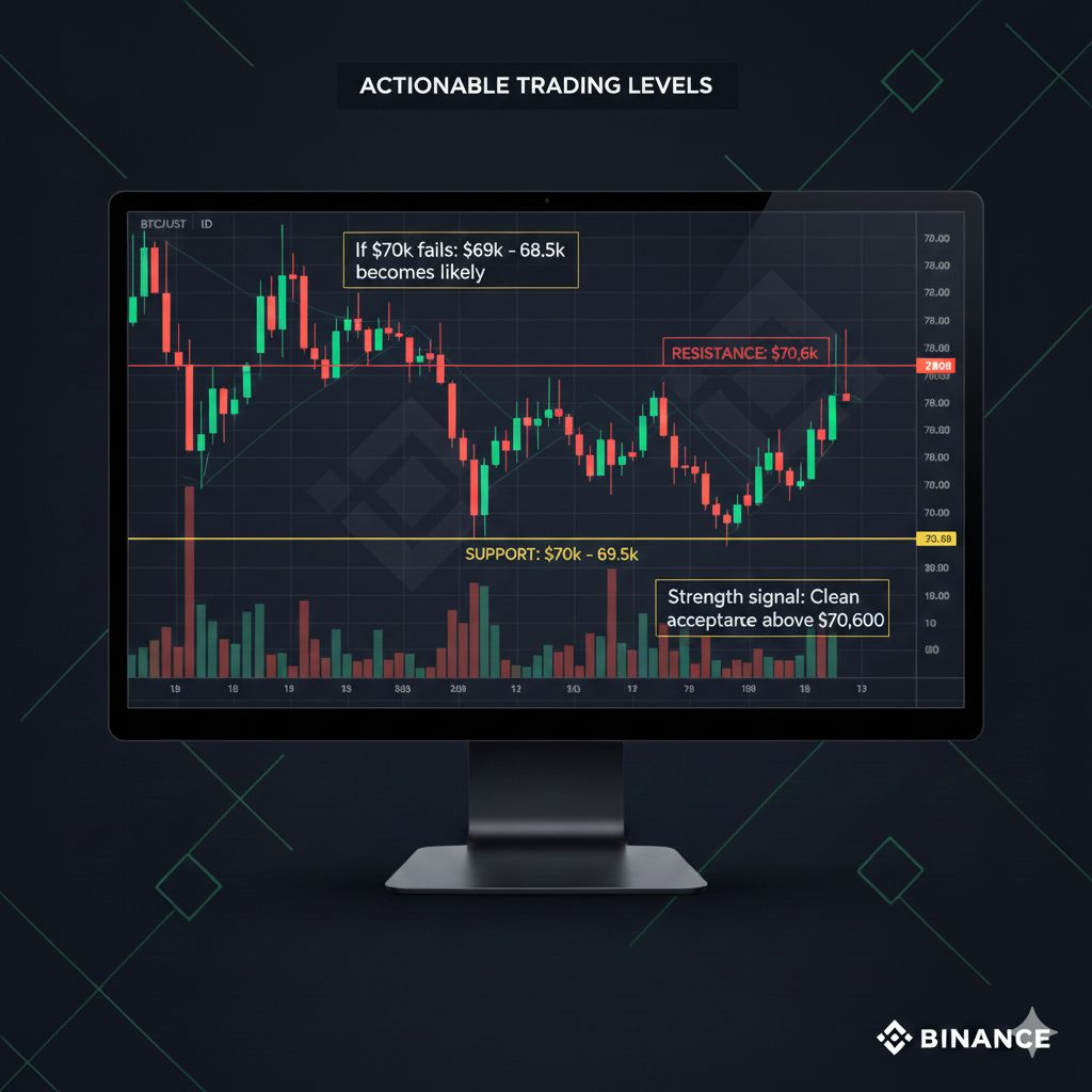 Se $70k falhar: $69k–$68.5k torna-se provável