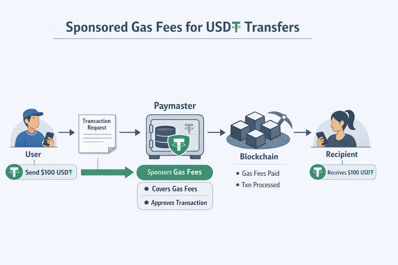 Aqui está como uma transferência real flui. Um usuário inicia um envio de USD₮. Sua carteira constrói uma operação de usuário em vez de uma transação bruta. Este pacote inclui os detalhes da transferência e um pedido de patrocínio de gás. O pagador verifica as condições. É USD₮? Está dentro dos limites de taxa? A conta está se comportando normalmente? Se aprovado, o pagador anexa o pagamento do gás e encaminha a operação para a rede.