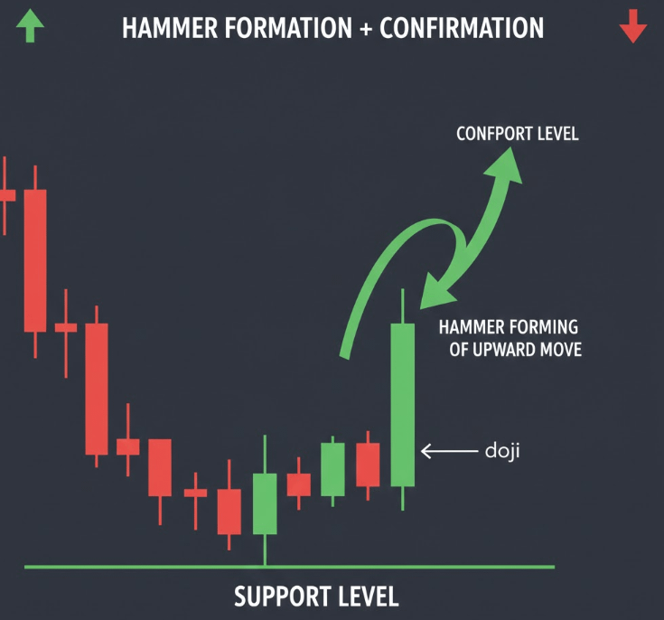 Contexto é Rei: Um "Martelo" só é significativo se ocorrer após uma queda de preço sustentada. Se você ver um martelo no meio de um mercado bagunçado e lateral (consolidação), é provável que seja "ruído" e deve ser ignorado.