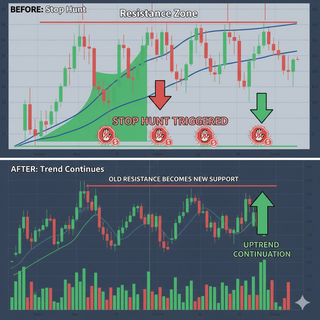 Para traders experientes, isso é um sinal de que a liquidez acabou de ser capturada.