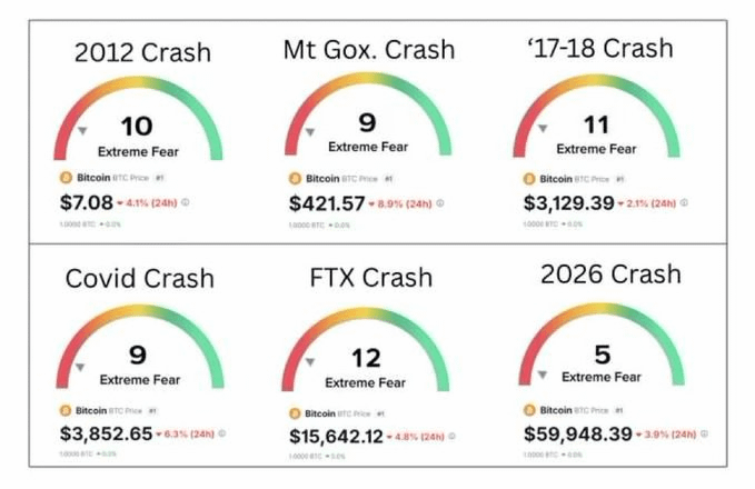👻 Historicamente, os momentos de extreme fear no Bitcoin coincidiram com fases de pânico, capitulação e desânimo. 2012, 2018, Covid, FTX.