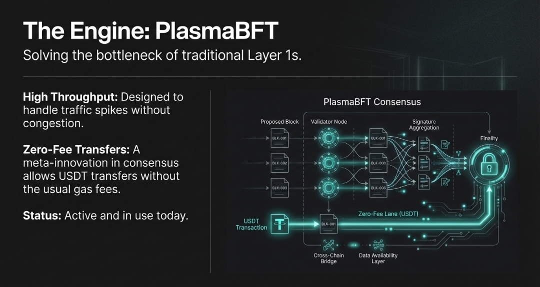 This isn’t just another chain for NFTs or yield farming. The focus here is utility fast, cheap, efficient movement of the digital dollar. To make that happen, Plasma built its own engine called PlasmaBFT. Fundamentally, PlasmaBFT is about high throughput and near-zero fees on certain transfers, especially USDT something that traditional blockchains still struggle with when traffic spikes.