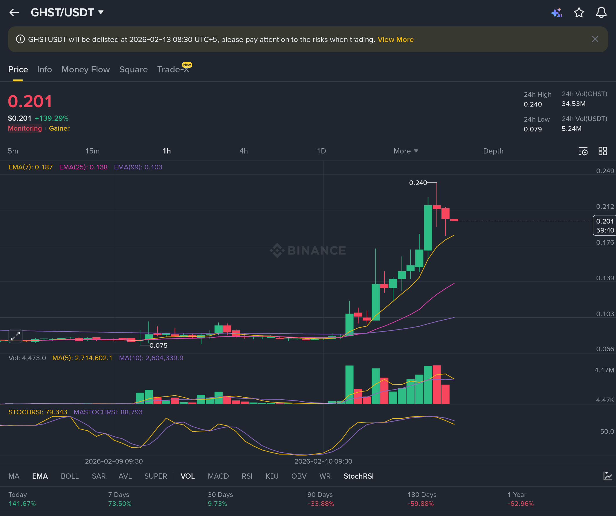 GHST está sendo deslistado porque: