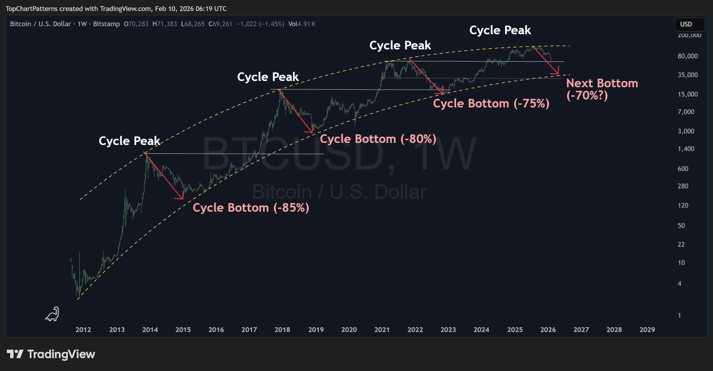 Se prestarmos atenção aos ciclos anteriores, o Bitcoin continuará caindo em 2026 até o final do ano antes de começar uma recuperação. Este é o cenário mais provável agora.