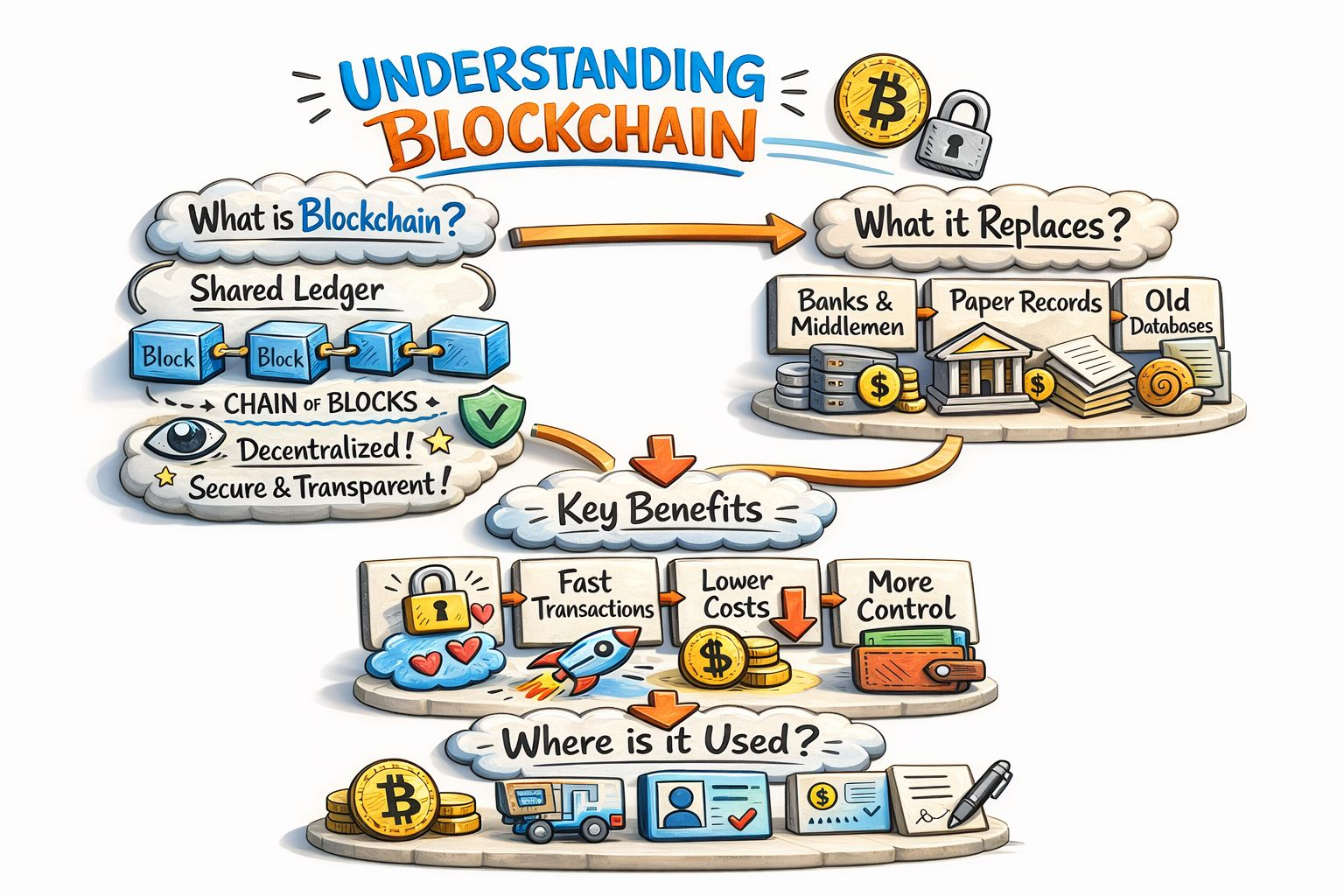 Blockchain offers a different idea. Instead of trusting one middle company, you trust a shared system that everyone can check.