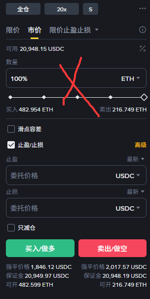 大家看这张 $ETH 的截图,把仓位拉到了 100%。