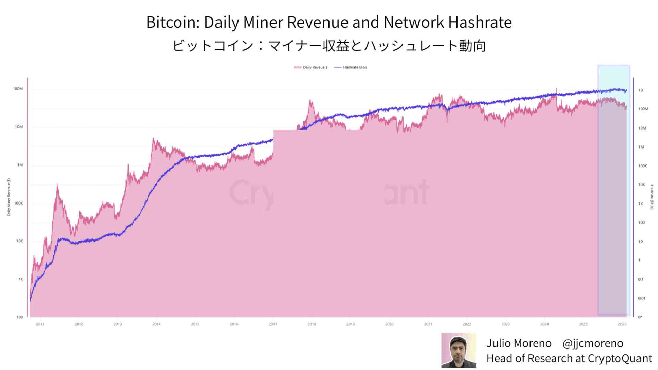 Atualmente, a pressão sobre a receita com taxa de hash estável aponta para ajuste em vez de capitulação total. Se a taxa de hash cair com a continuidade da compressão da receita, a fraqueza estrutural pode se estender. Se as taxas se recuperarem e a taxa de hash se estabilizar, essa visão deve ser reavaliada.