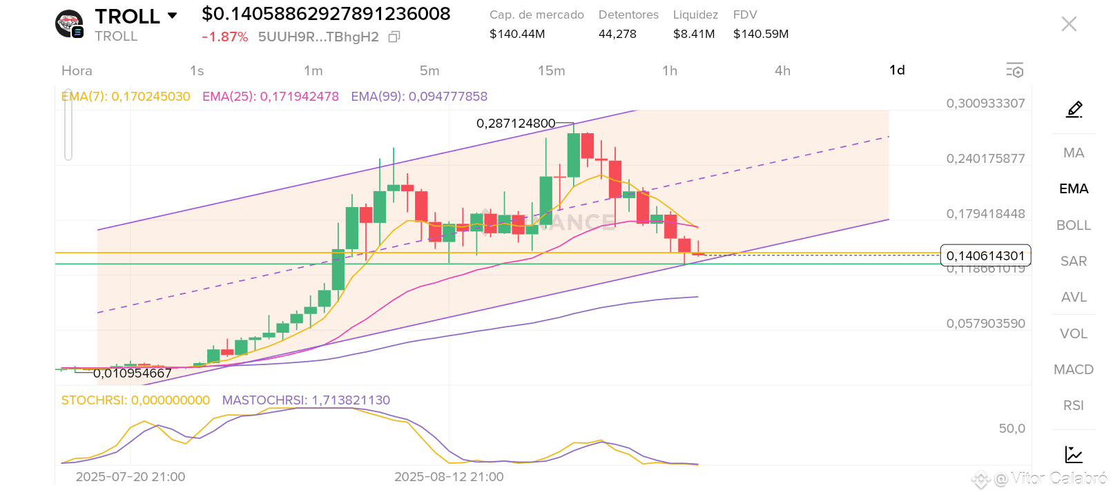 $TROLL ela vai buscar a média móvel de 99 no período de 1 dia ou irá respeitar o fundo??? Tudo indica que está respeitando, mas creio em mais um pouco de correção! Aguardemos os próximos dias...
