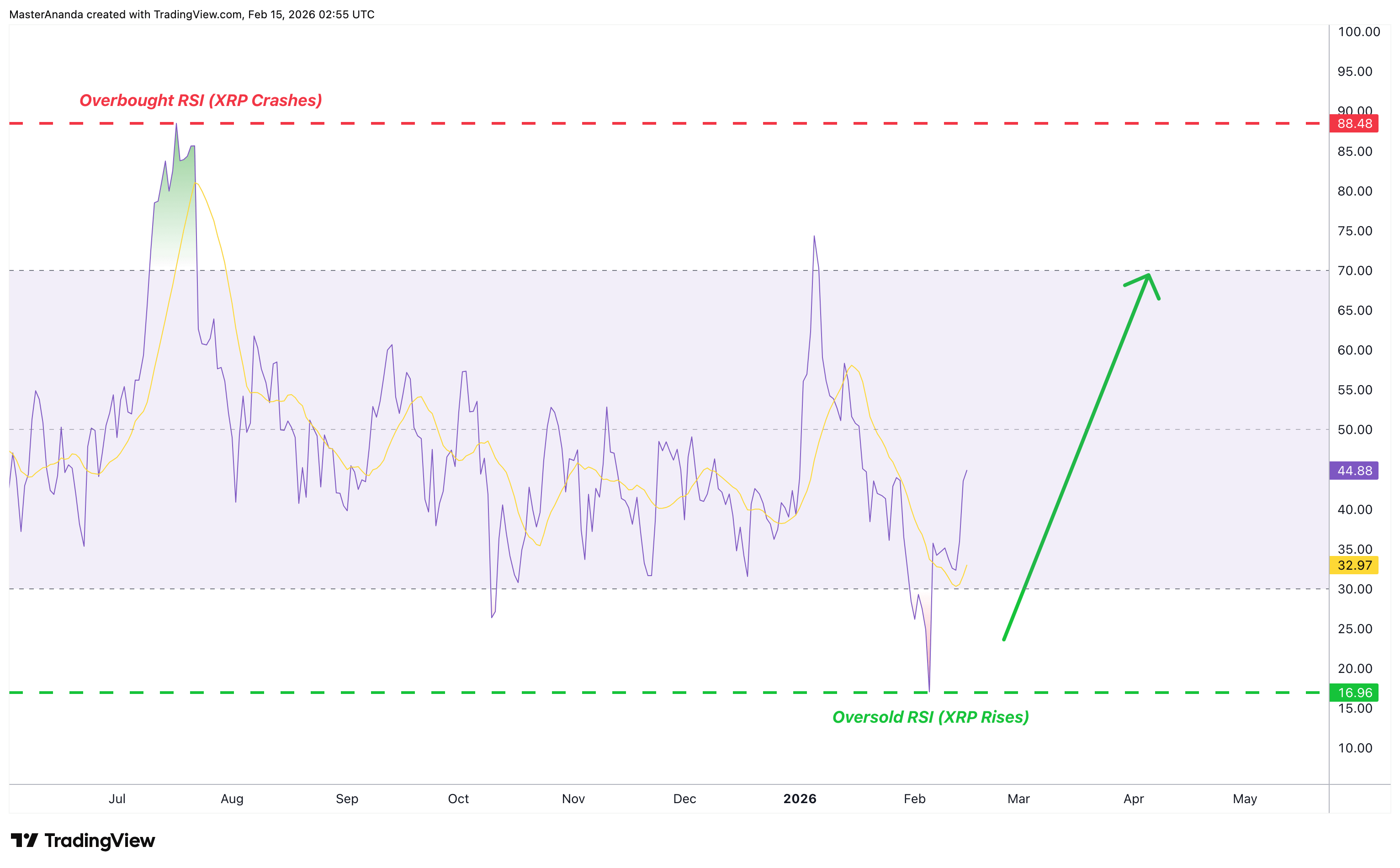Quando o RSI se torna sobrevendido, o mercado tende a subir. Este sinal apareceu recentemente e $XRP agora está subindo.
