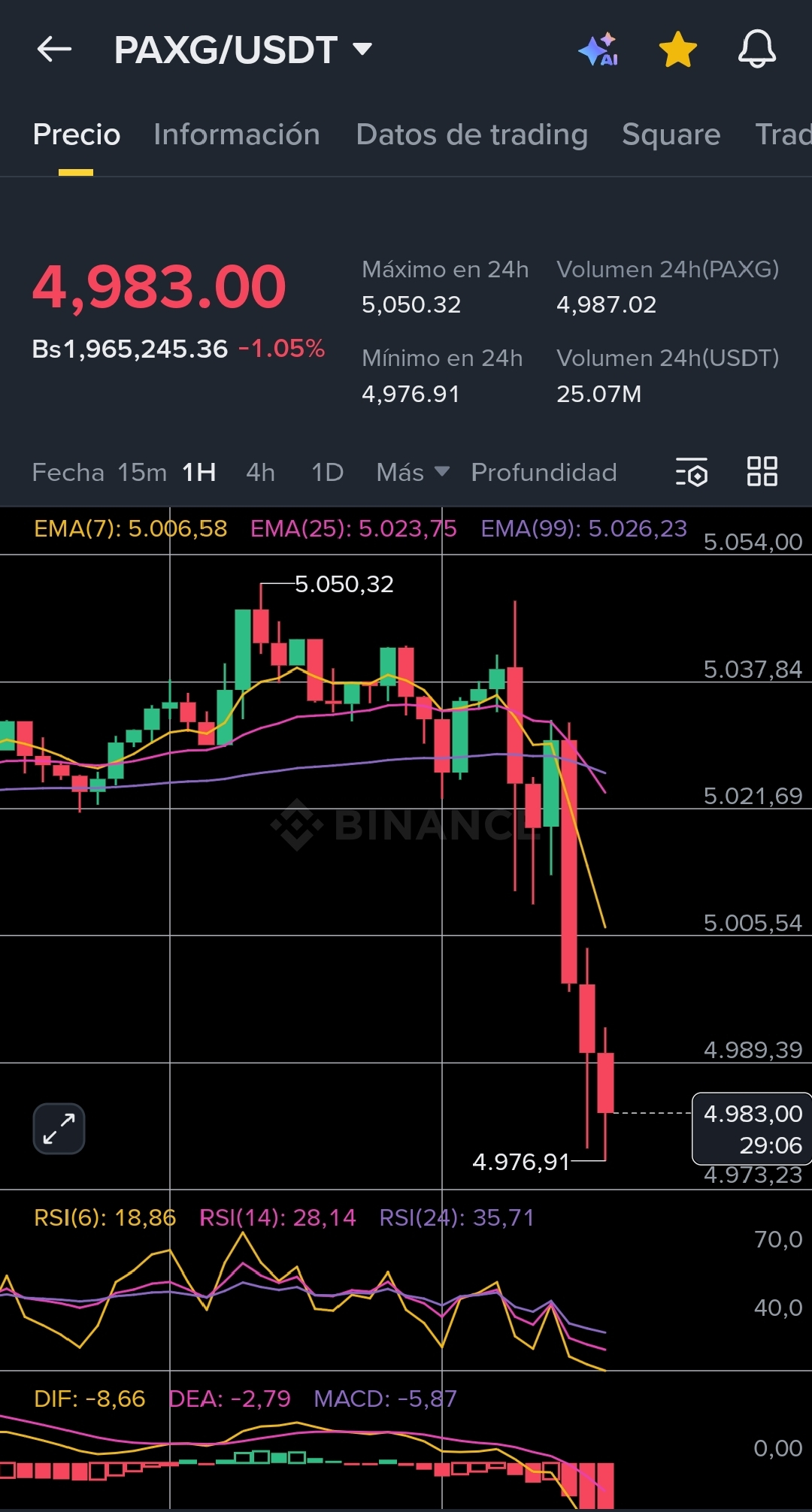 Quebrou o suporte! O ouro tokenizado (PAXG) acabou de cair para abaixo de $4,980 em um movimento que deixou muitos em choque. Mas como sempre dizemos no trading: "Onde alguns veem pânico, os especialistas veem oportunidade".