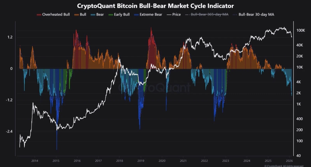 As displayed in the above graph, the CryptoQuant Bitcoin Bull-Bear Market Cycle Indicator plunged into the region below zero during the last few months of 2025, suggesting that the P&L Index crossed below its 365-day MA.