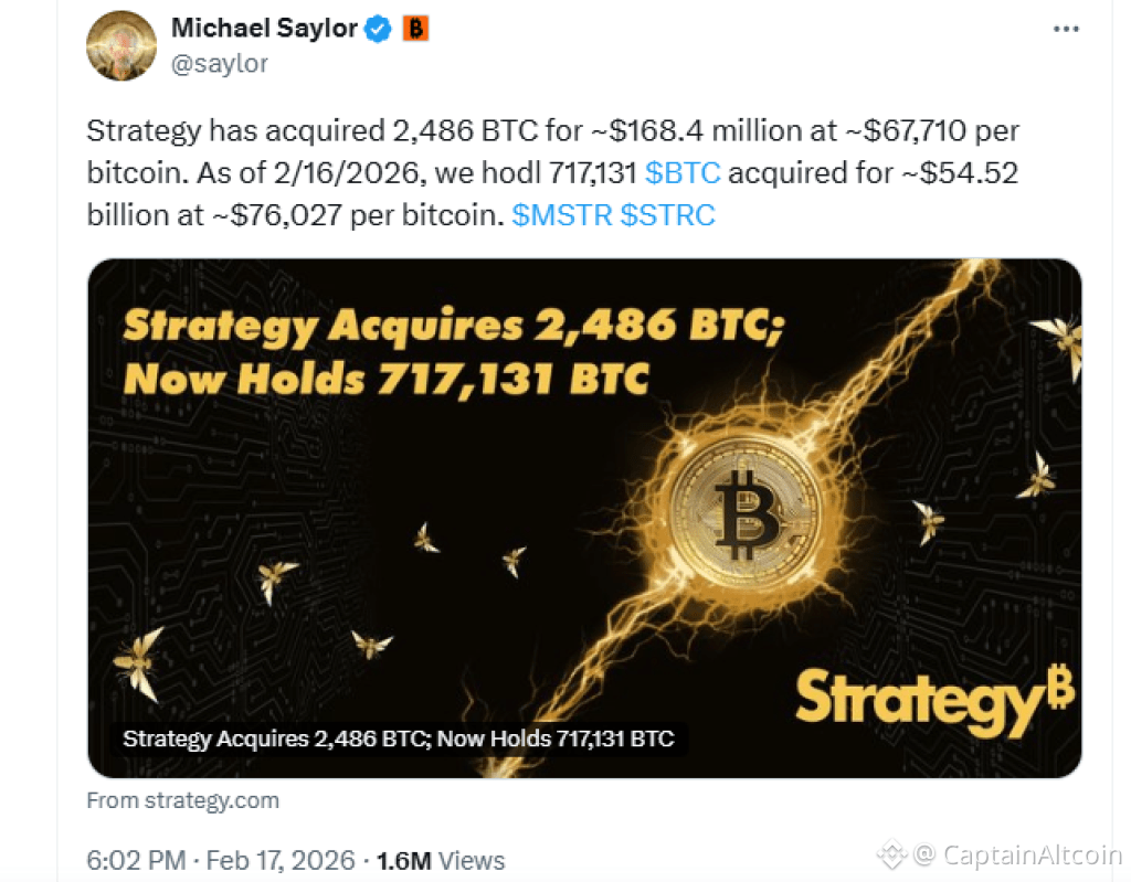 Strategy and Bitmine expanded their digital asset holdings this week despite brutal market conditions. Strategy spent $168.4 million buying Bitcoin between February 9 and 16, pushing total holdings to 717,131 BTC.