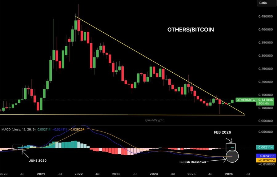 Este sinal não é apenas um pequeno movimento, mas algo que historicamente marcou o início de grandes ralis de temporada de altcoins.