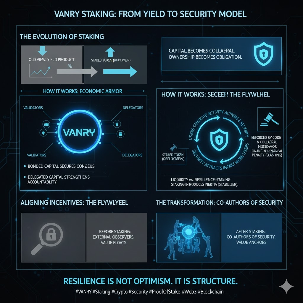 In VANRY’s case, staking is not merely a mechanism for rewards,it is a flywheel. Each additional staked token strengthens the conditions that justify further participation.