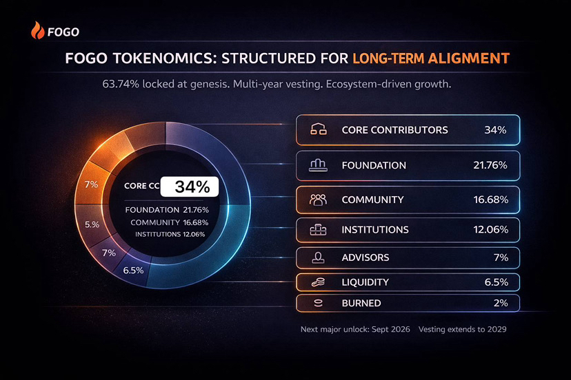 Uma maioria da oferta permanece bloqueada, o vesting se estende até 2029 e a propriedade é amplamente distribuída. A estrutura econômica reflete um alinhamento de longo prazo em vez de monetização rápida.