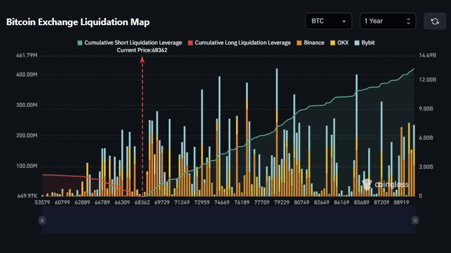 Se #bitcoin conseguir retomar o nível de $90K, o mercado pode testemunhar um significativo squeeze de vendedores a descoberto.