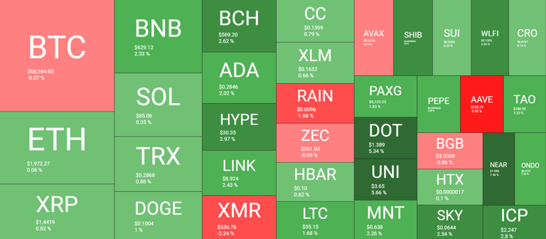 O Bitcoin estabiliza em $68K enquanto os mercados de fim de semana mudam