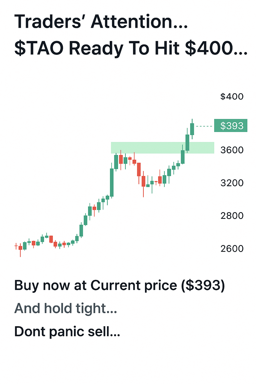 Atualmente negociando em torno de $393, $TAO mostrou força consistente, apoiada por acumulação estável e crescente interesse do mercado. A estrutura técnica sugere que os compradores estão no controle, e um movimento sustentado acima de $400 poderia abrir a porta para um novo movimento de alta.