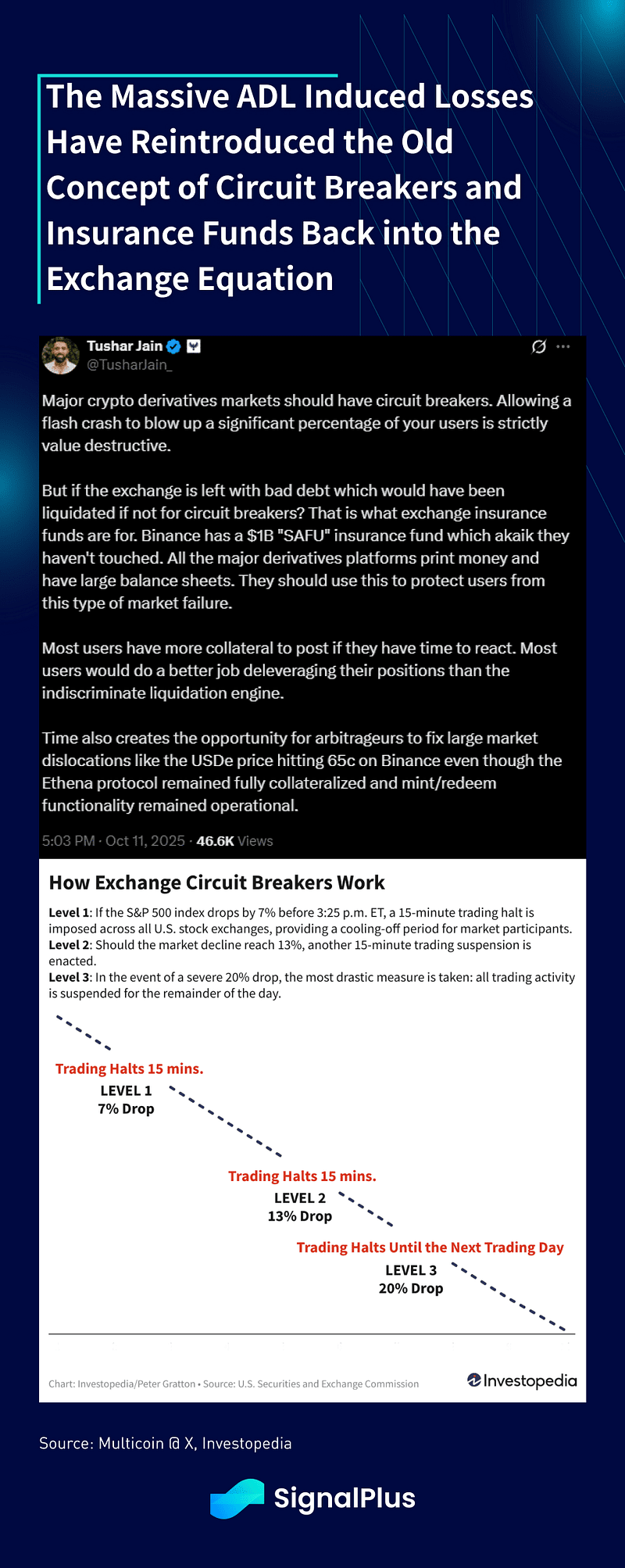 No mundo TradFi, isso é mitigado um pouco pela presença de circuit breakers, que teriam transferido parte da dor dos detentores de ativos para os operadores de câmbio, o que exigiria um fundo de reserva / seguro semelhante ao FDIC para bancos. No entanto, isso resultaria em menos alavancagem disponível para os traders de CEX, à medida que os custos de negociação aumentam (o que é uma das razões pelas quais as exchanges de cripto podem oferecer mais alavancagem de negociação do que, por exemplo, a CME), e também vai contra os mercados contínuos '24/7' que os traders de cripto valorizam muito.
