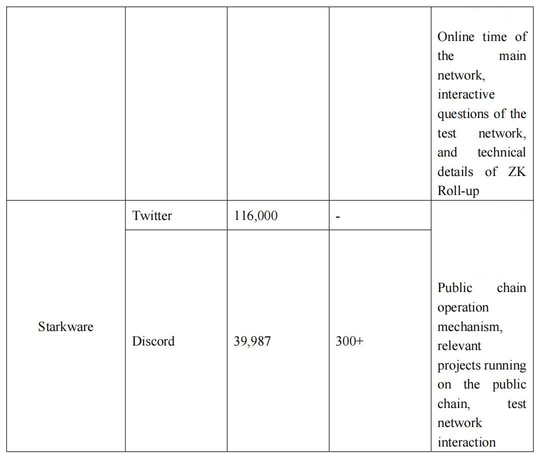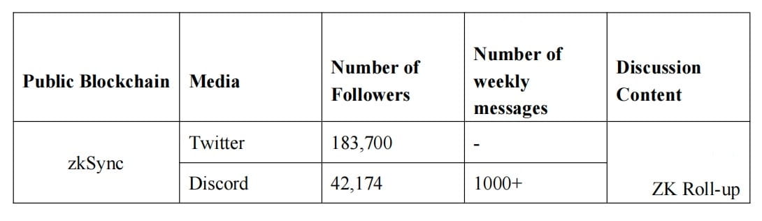 Para a comunidade, os dois projetos atuais do ZK Rollup estão próximos do BSC, Solana e Avalanche em termos de indicadores de atividade da comunidade, como número total de palestrantes nas redes sociais, conteúdo da mensagem, etc. alto-falantes, zkSnyc está ainda à frente de outras redes públicas, pelo fato de a rede principal ainda não estar online. Do ponto de vista das instituições de investimento, em março de 2022, a StarkWare realizou a última rodada de arrecadação de fundos na escala de US$ 6 bilhões, abrindo seus investidores anteriores. Este é definitivamente o melhor em financiamento. Existem também instituições de investimento conhecidas no mercado de criptografia, exceto o fundador da Ethereum, Vitalik Buterin, como Paradigm e Sequoia Capital na era da web 2.0. Por outro lado, o processo de arrecadação de fundos do zkSnyc parece estar mais próximo dos desenvolvedores e usuários. Exceto VC, como Union Square Ventures e A16Z, há também uma série de projetos DeFi e investimentos em bolsas, que também deverão trazer rápida integração após a principal linha online do zkSync2.0.