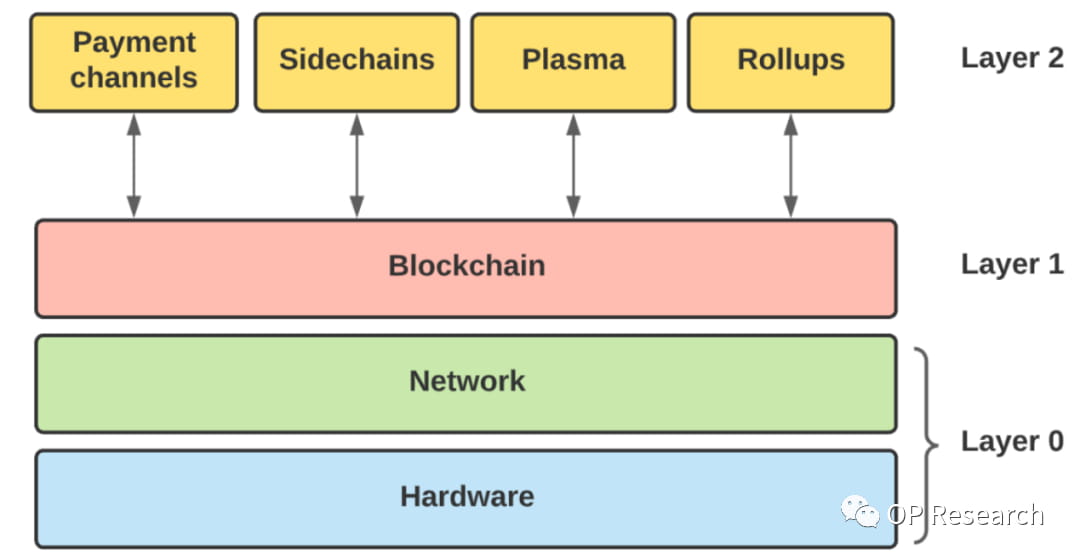 A Camada 2, como um esquema otimizado da blockchain pública Ethereum, tem sido um foco de atenção, discussão e P&D. Por exemplo, as equipes de P&D fizeram tentativas ativas nas soluções técnicas da camada 2, como o Ronin onde Axie está, e Starknet, Arbitrum, Optimism e ZKSync usados pela DYDX. Então, o que é a camada 2? A própria blockchain pública Ethereum é chamada de camada 1, rede principal ou camada blockchain principal, e a camada 2 significa mover transações da camada blockchain principal para uma camada separada que pode se comunicar com a cadeia principal para obter transações mais rápidas com uma taxa de gás mais baixa. Conforme mostrado abaixo, a camada 2 é como uma espécie de via expressa estabelecida na rede principal do Ethereum para desviar o volume de transações e aliviar o congestionamento de transações na camada principal do blockchain do Ethereum. Atualmente, existem várias soluções técnicas para camadas, incluindo canais de status, sidechains, Plasma, Rollups e assim por diante. Sidechains e Rollups, duas soluções comuns para as pessoas, diferem da seguinte forma: o primeiro precisa ser verificado por seus próprios nós independentes, com sua segurança dependendo principalmente de si mesmo (Polygen é um dos casos de sidechain), enquanto o último processa transações em lotes e de forma centralizada na cadeia com base diretamente na camada 1, e libera as atualizações para a blockchain principal junto com os dados de transação em sua cadeia, e sua segurança ainda depende da camada 1.