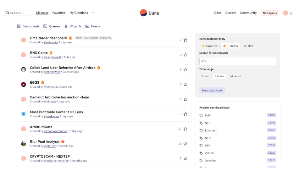 Análise de Dados e Resumo Observacional A análise de dados sempre foi uma ferramenta poderosa para entender intuitivamente as tendências sem perder nenhum detalhe. Dados on-chain, com sua multidimensionalidade, atualizações em tempo real e anonimato, podem ser difíceis de navegar. Dune fornece milhares de painéis para centenas de projetos, oferecendo métricas chave para DeFi, NFT e outras áreas que os usuários podem consultar facilmente usando SQL para acessar dados legíveis.