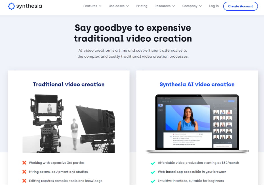 Gravar um vídeo geralmente requer muito tempo e esforço, especialmente para fins explicativos e de compartilhamento de conhecimento. Ferramentas como Synthesia eliminam diretamente uma série de etapas problemáticas, como configurar um estúdio, gravar e editar vídeos, e permitem que você selecione uma imagem de personagem para ser lida e gravada no local.