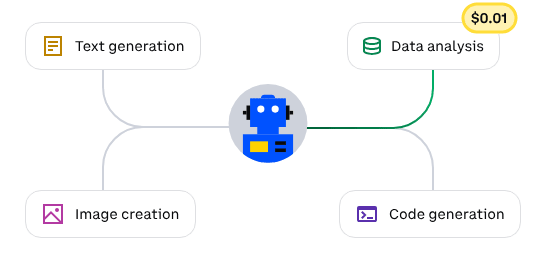 Esse modelo desbloqueia novas possibilidades. Programas podem pagar pequenas quantias com base no uso; para cada ação, arquivo ou chamada de API. Não há necessidade de assinaturas mensais, créditos pré-pagos ou checkouts manuais.