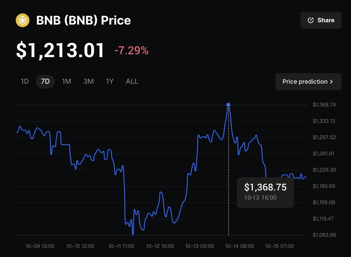 A BNB quebrou oficialmente seu recorde anterior, ultrapassando $1.200+ e despertando uma nova empolgação na comunidade cripto. O aumento reflete a renovada confiança dos investidores, o aumento da atividade na cadeia e a forte dominância da Binance nos mercados globais de cripto.