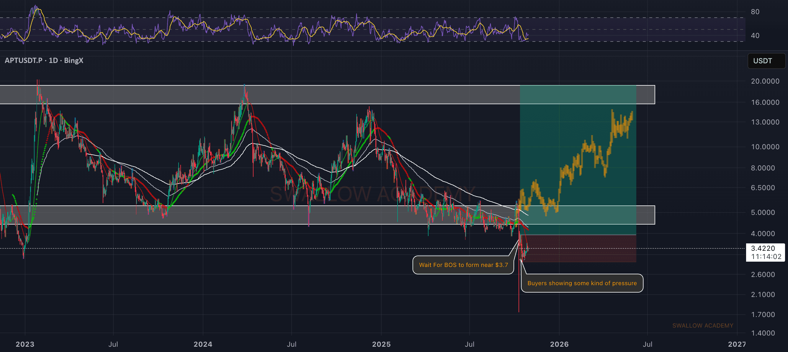 Os compradores em APT estão começando a mostrar alguma pressão novamente, mas ainda estamos aguardando a formação de um BOS adequado em torno da área de $3.7. Este será o primeiro sinal real de que os compradores estão recuperando o controle.