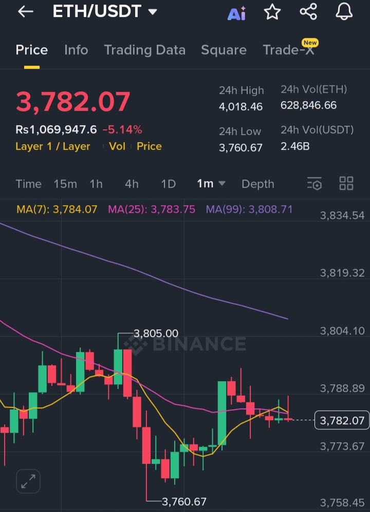 $ETH acabou de esfriar para $3,782 (-5.14%), após tocar máximas perto de $4,018 — mas os traders não estão em pânico 👀. Cada queda tem sido uma entrada dourada para aqueles que esperam pacientemente!
