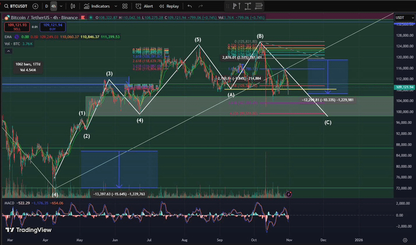 Fibo Retracement: Medir a correção da onda (usado para ondas 2, 4, ou A–B–C).