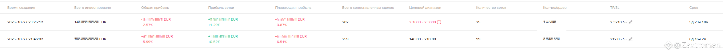 На одном из падений зашел в спот-сетки по $XRP (заход на 2.2349) и $SOL (заход 170.45). В обеих случаях считаю, что зашел неудачно - сильно высоко, особенно по Солане. Ну да и бог с ним, по Солане диапазон перекрыт хорошо (140-210 эуро), а вот по XRP всё хуже (2.1-2.3 ойро).