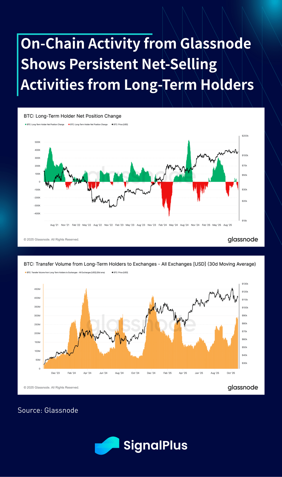 Finalmente, a atividade on-chain mostra que os detentores líquidos de longo prazo estão se tornando vendedores líquidos de forma bastante consistente desde o início do verão, o que tende a deprimir a ação do preço nos próximos meses, como vimos atualmente. Além disso, com base na análise da Glassnode, o alto volume de transferências de carteiras de longo prazo para CEX também sugere ações preparatórias para vendas, com as médias recentes mostrando um aumento considerável e colaborando com mais atividades de realização de lucros dos detentores de longo prazo.