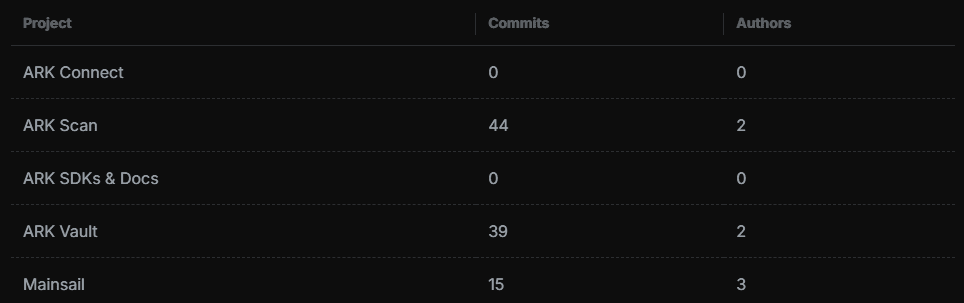 Bem-vindo ao nosso mais recente Relatório Semanal de Desenvolvimento, onde destacamos os esforços valentes de nossa equipe de desenvolvimento. Esta semana, a equipe do ARK Scan continuou avançando com a migração do Inertia e melhorou o recurso de Exportação para suportar capacidades adicionais de exportação de dados. A equipe do ARK Vault focou nas atualizações do Painel Lateral, melhor manuseio de transações pendentes e uma série de correções e melhorias. Enquanto isso, a equipe do Mainsail trabalhou para aumentar o desempenho de processamento, expandir o suporte a estatísticas e entregar melhorias gerais adicionais em toda a plataforma.